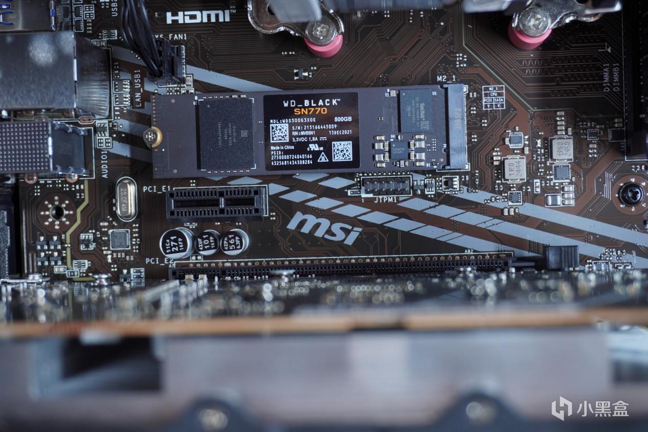 现在固态普遍都涨价了,我其实想买铠侠RC20的,但是涨价了,然后看到了一个319元好价的SN770 512G就直接买了。当然这里争议其实是很大的,其实可以从机箱哪里挤点预算上1T。但当时是单个单个分着买的,不是一次性买好的,所以看到好价就直接买了,没想那么多。SN770的读写速度是5000MB/s,用在微星这块主板是就限速了,不过也能到3500多也不错了。