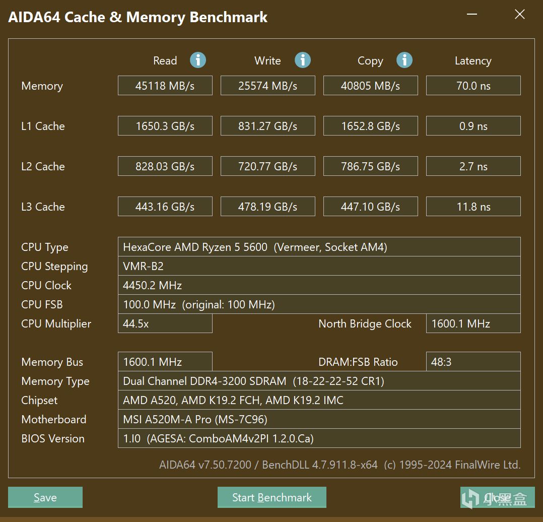 读取速度为:45118 MB/s