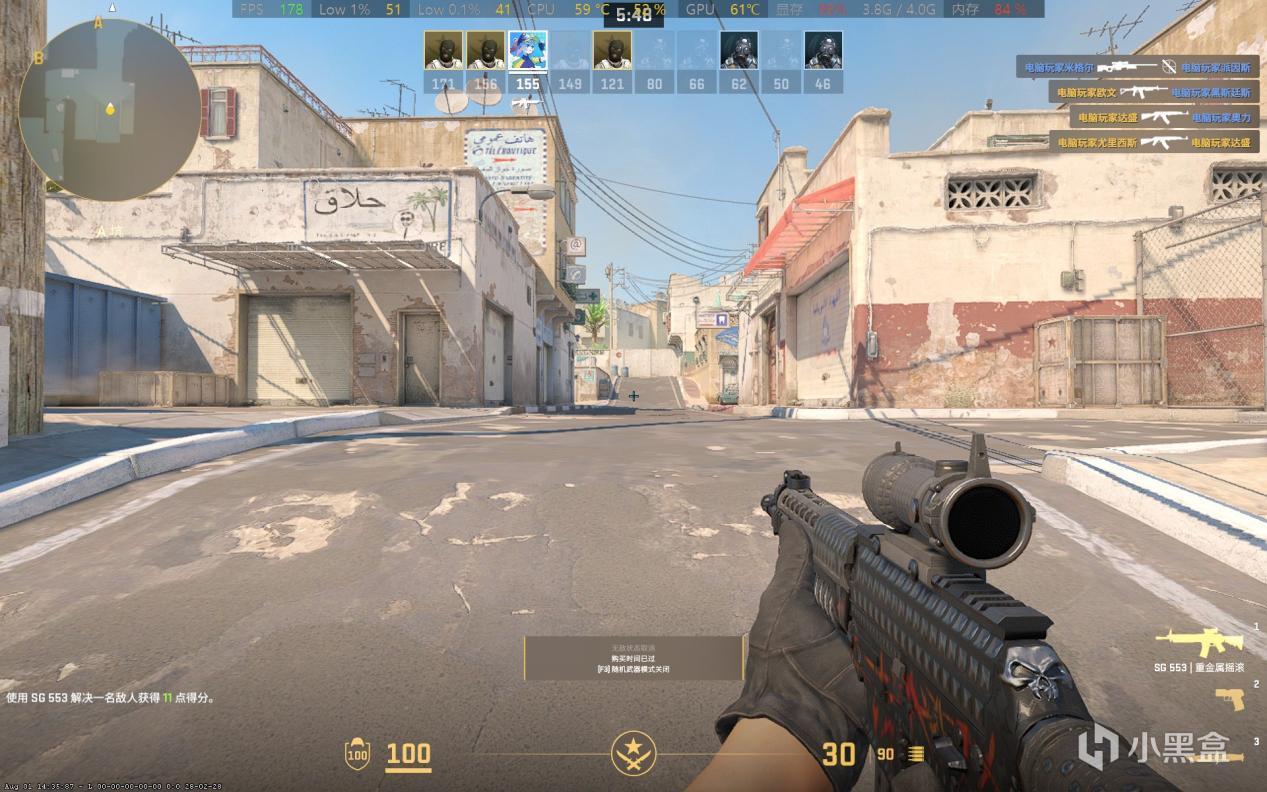 在CS2这款游戏中,1K中画质,基本上帧数在140FPS到180FPS之间浮动。