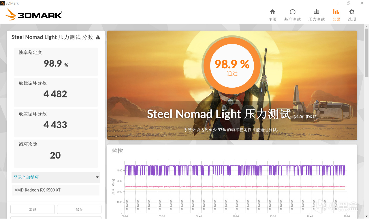 在Steel Nomad Light压力测试中: