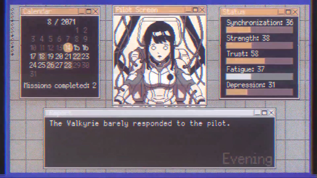 在这款科幻视觉小说Valkyrie Iteration中,玩家将扮演技师长,训练并引导年轻的机甲驾驶员拉娜,以及她的有感知的机甲——女武神,准备迎战神秘敌人。