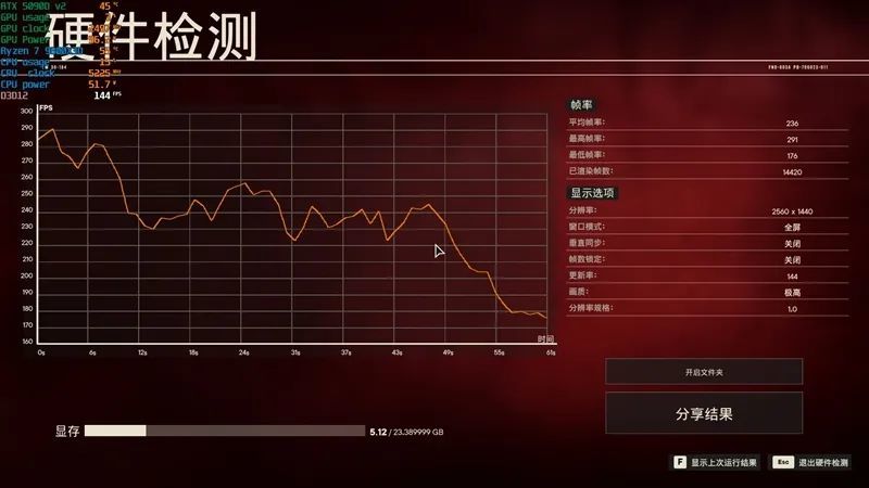 开启光追之后掉到了40FPS。