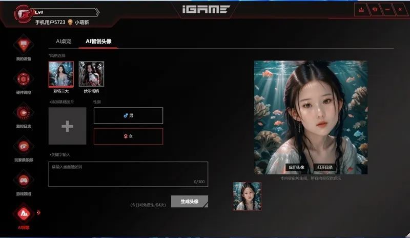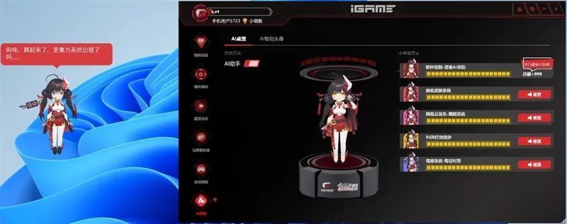 AI桌宠“柒小希”是自在星球最大的亮点,同时也是iGame的虚拟代言人。