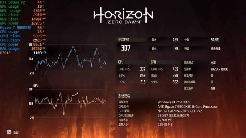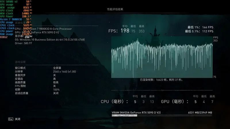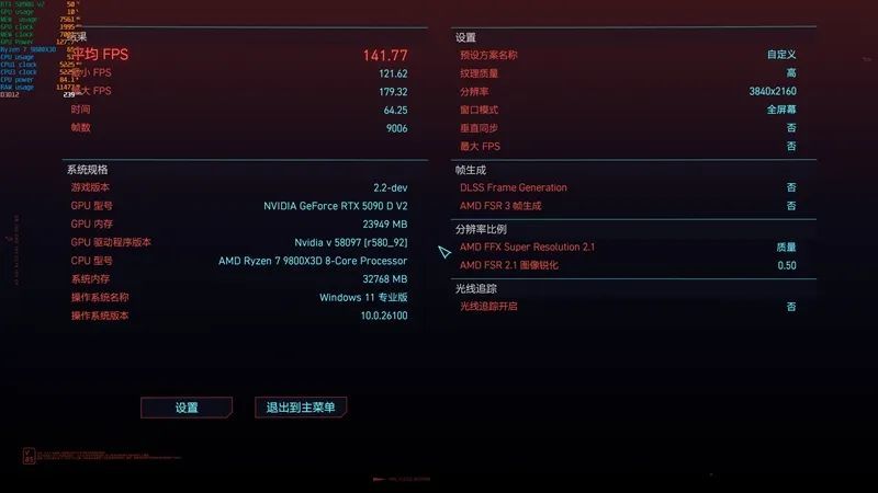 虽然被迫阉割了显存让玩家很伤心,但通过实际测试我们发现显存对游戏帧率的影响并没有那么大,RTX 5090 D v2的性能超出了我们的预期!