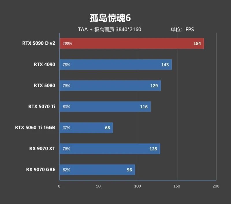 到了4K分辨率,RTX 5090D才发挥出真正实力,比RTX 4090强了26%,比RTX 5080快了50%。