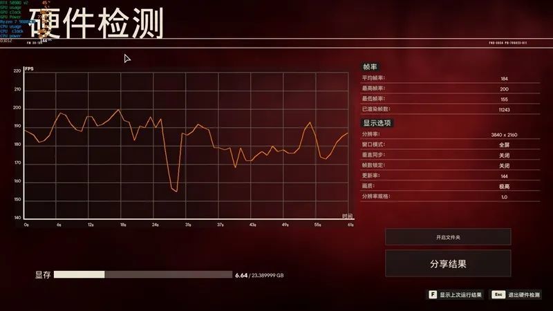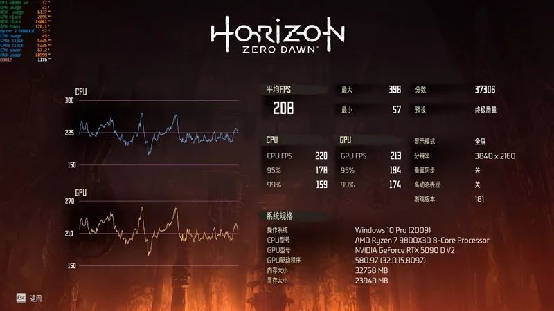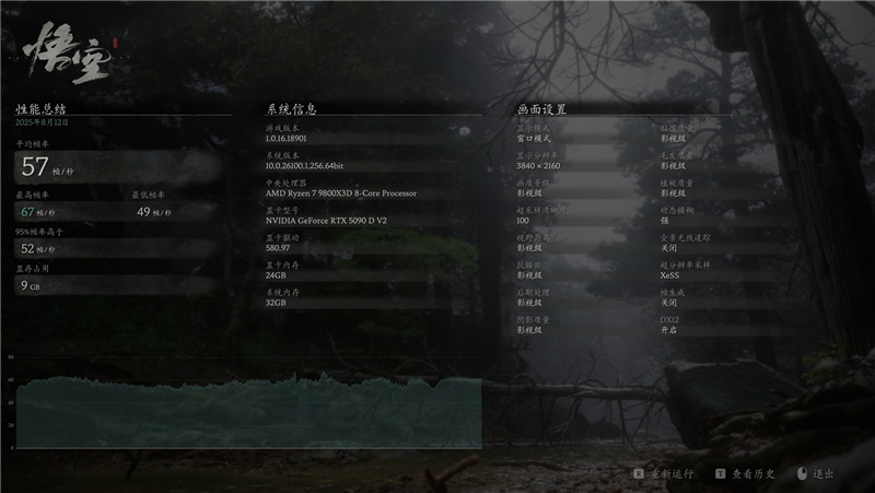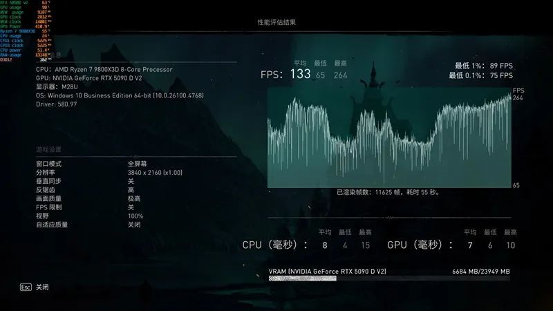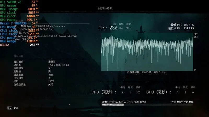 4K分辨率最高画质下,RTX 5090 D v2帧率为57FPS。