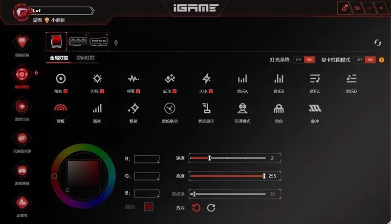 硬件调控也做了升级,iGame自在星球具备空间场景灯光系统,支持对每一颗灯珠进行独立控制,带来更深入的层次感、氛围感。