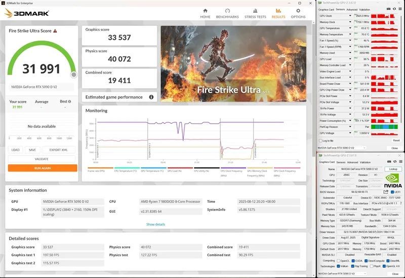 实测超频之后游戏帧率可以提升7~8%,此时的性能已经超越了RTX 5090 D。