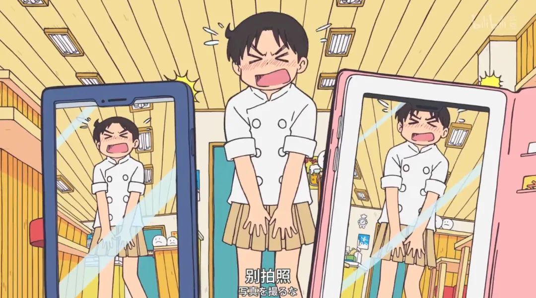 比如动画第一集南云打工的饭店,饭店老板的一对儿女“真壁立涌”“真壁祭”对着一周的星座指南说起。哥哥假装唯物主义不信这个,后来又暗搓搓地询问,最后狠下心穿上“短裙”,拥抱幸福人生。