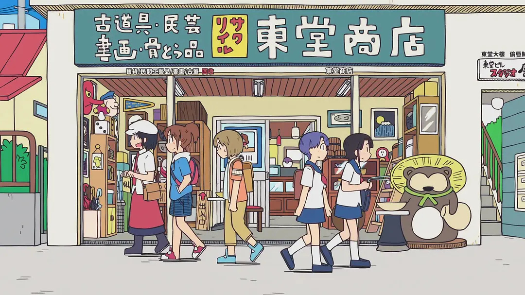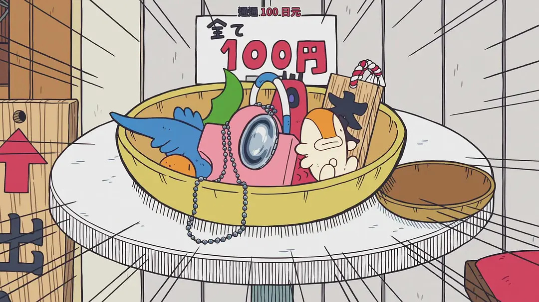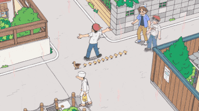 新井圭一在创作《小城日常》的过程中,将很多笔墨都放在了刻画小城的烟火气。从动画中也能注意到这一点,经过卡通化处理的小城依然保有各种生活化的细节,与街道上的路人一起构成了小城特有的市井气。