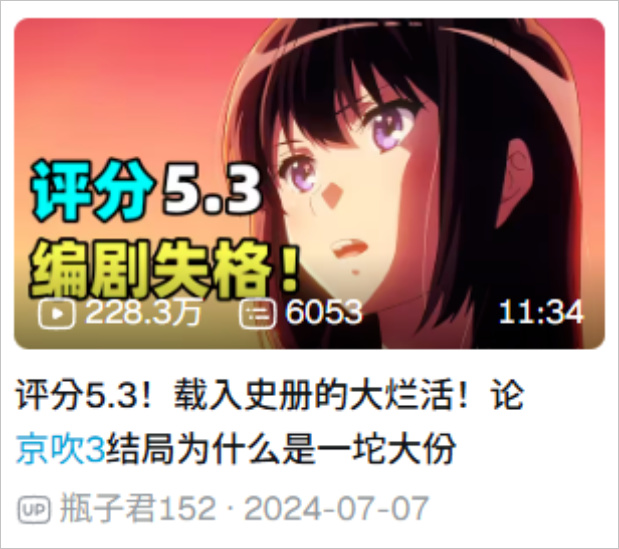 这之后就有了饱受争议的《吹响吧!上低音号 第三季》(以下简称:《京吹三》)。