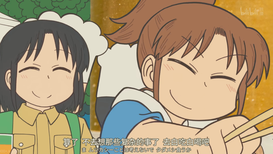 这就是《小城日常》,它的笑点埋得很深,更多也只是角色之间的心理挣扎,奇思妙想。不过,这只是我推荐这部动画的原因之一,还记得前面说过的“更深的意义”吗?我觉得《小城日常》是可以代表京都动画重新复苏的一部作品。