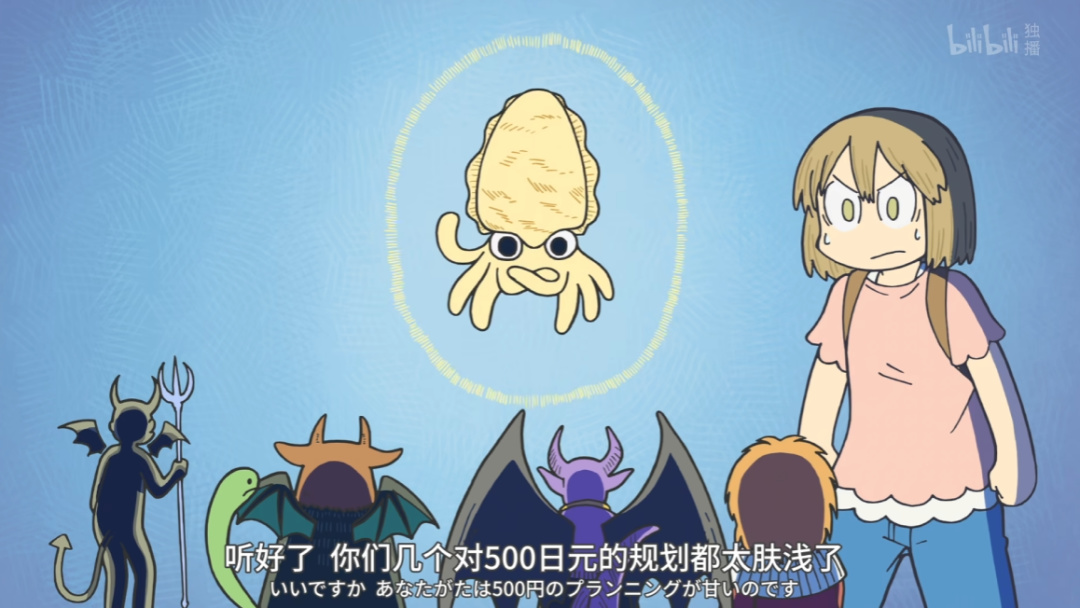 天人交战了足足两分钟,各式各样的贪念恶魔在脑子里诱惑她。恶魔形象从最开始的普通恶魔,到之后的欧洲刻板印象恶魔,再到最后的乌贼恶魔……