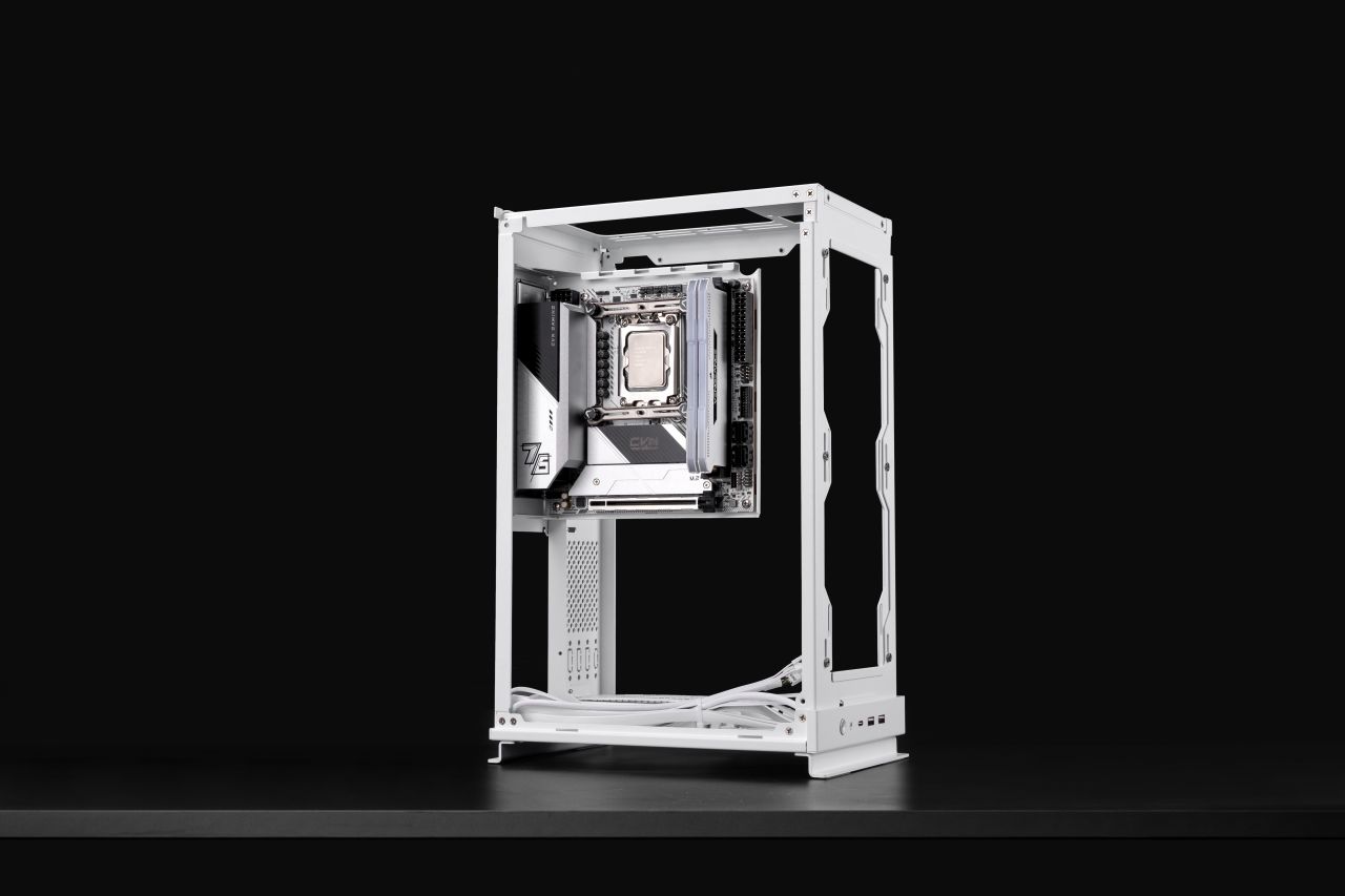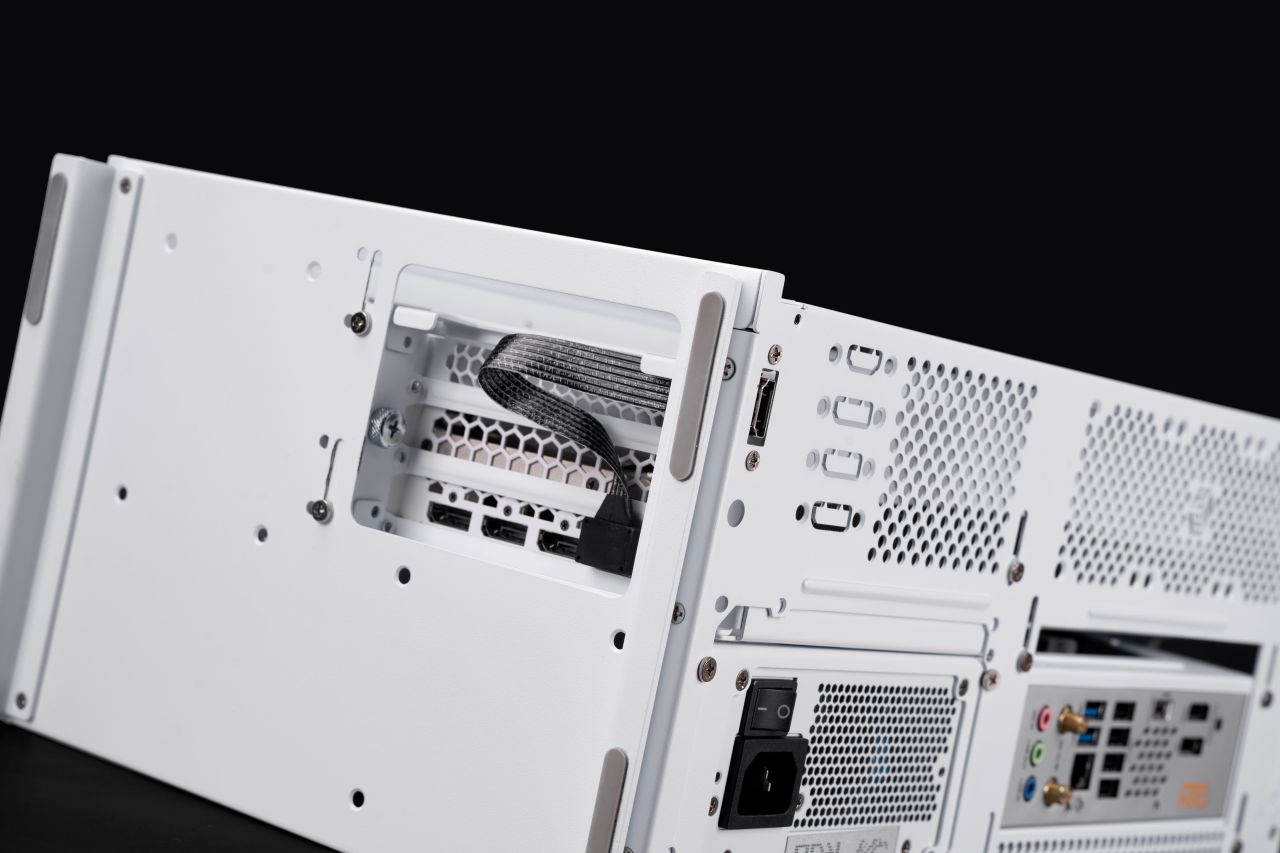 主板框架采用了三角形结构的加固框架,同时为了更高的可玩性,主板框架和显卡固定槽位都在机箱尾部采用了可无极调节的设计