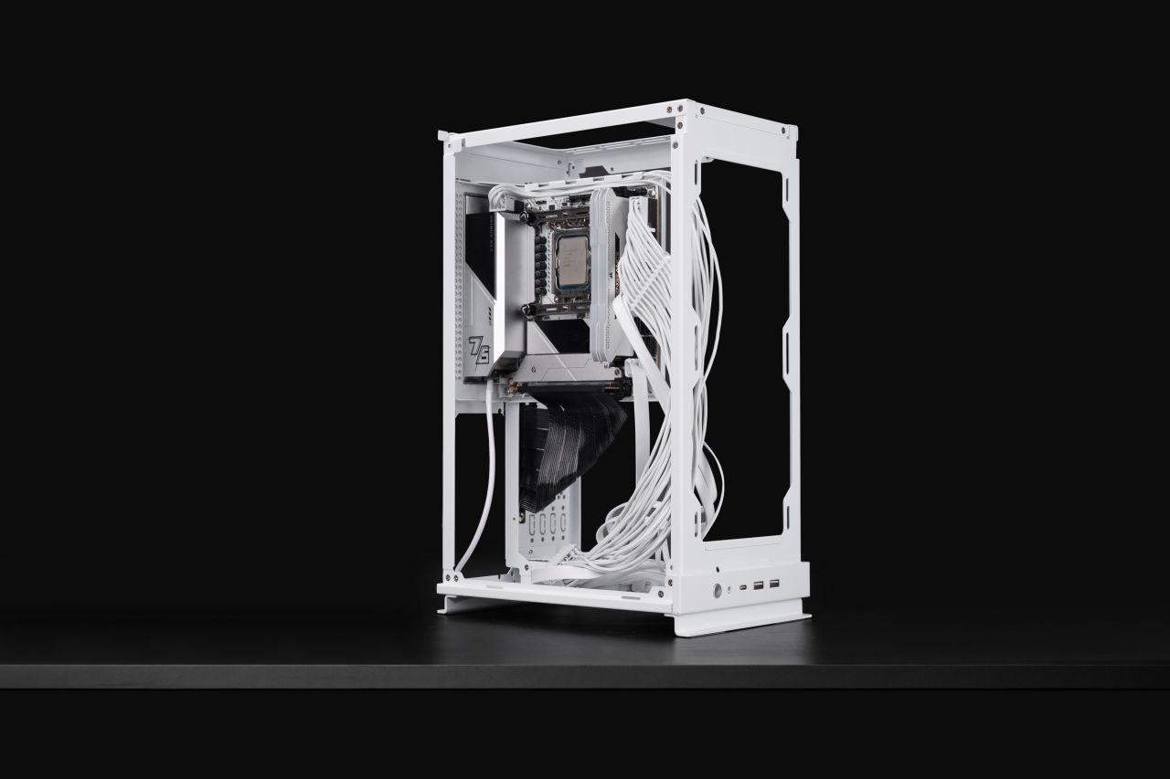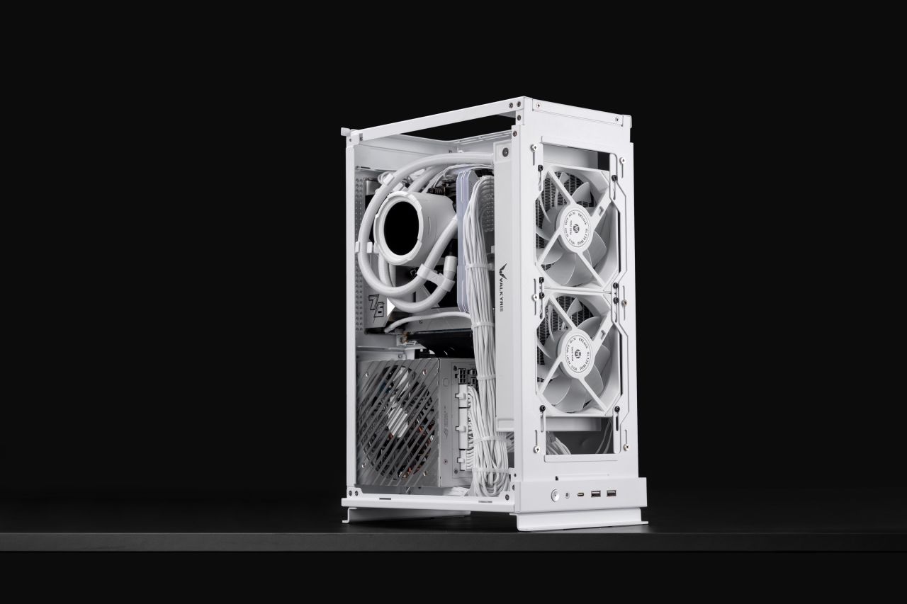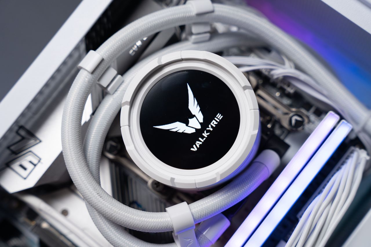 本套显卡选用了同样颜值非常高的9070XT盈通花嫁,这款显卡最大的精髓就是要竖装才能完美展示它的颜值,因此搭配立式机箱非常的合适