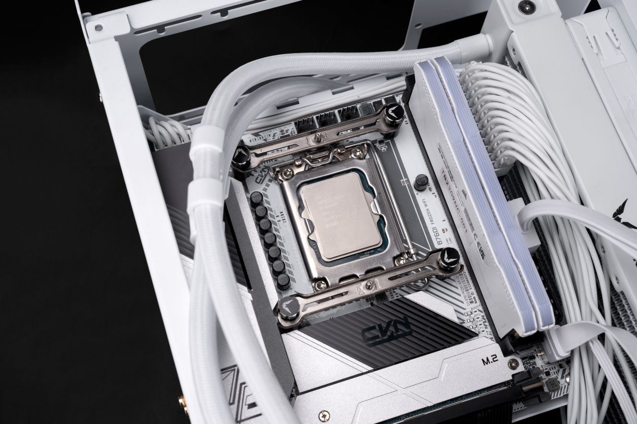 所以这里的第一步就是安装主板(包括预装好CPU、内存、固态)之后,就开始接线并整理所有线材至主板右侧的空位,电源线材尽可能选择软的硅胶定制线