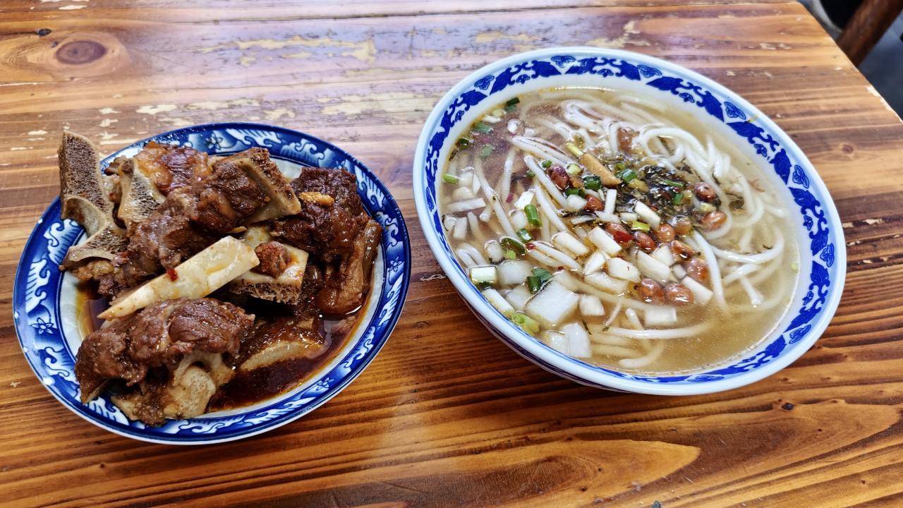 这时候就有老铁要问了,每天吃恁老多,还一会辣一会冰的,肠胃能受得了吗。包受不了的兄弟,作恶多端的我在这天早上终于是遭报应了。折腾到十二点才收拾完东西出门,简简单单找个小馆子吃顿午饭吧。