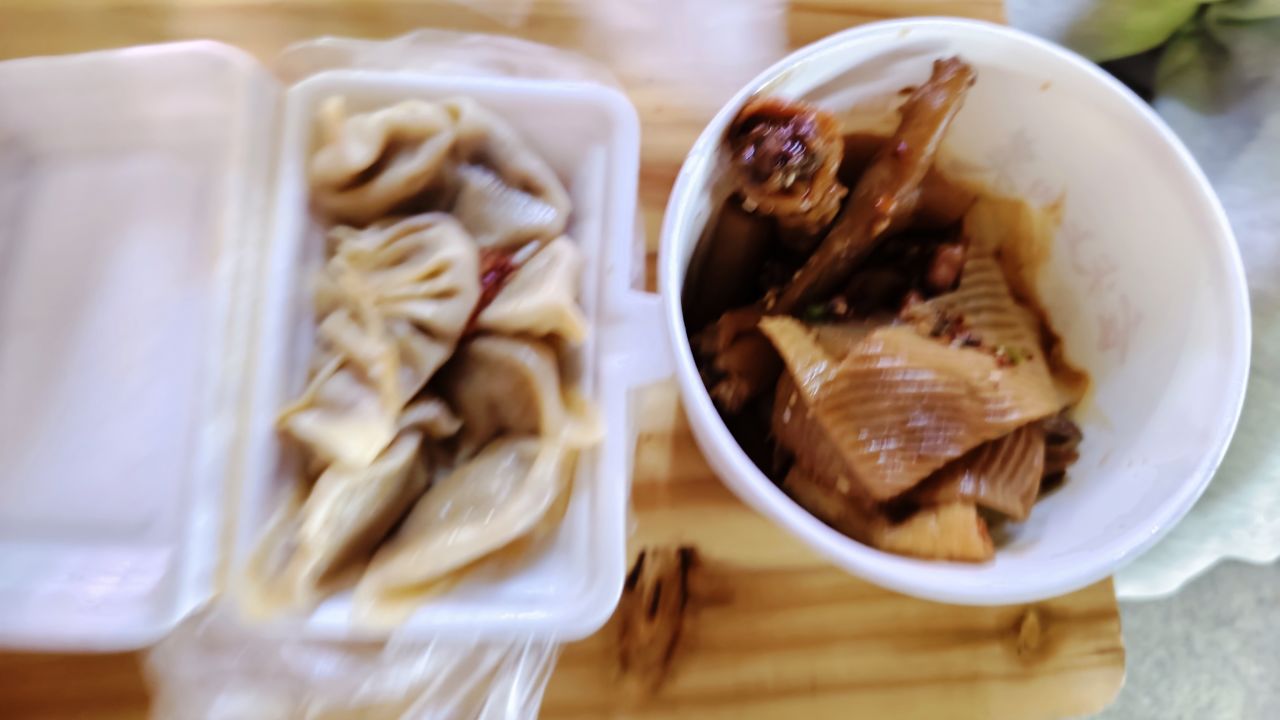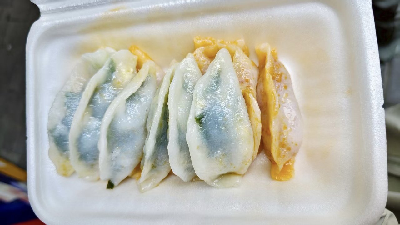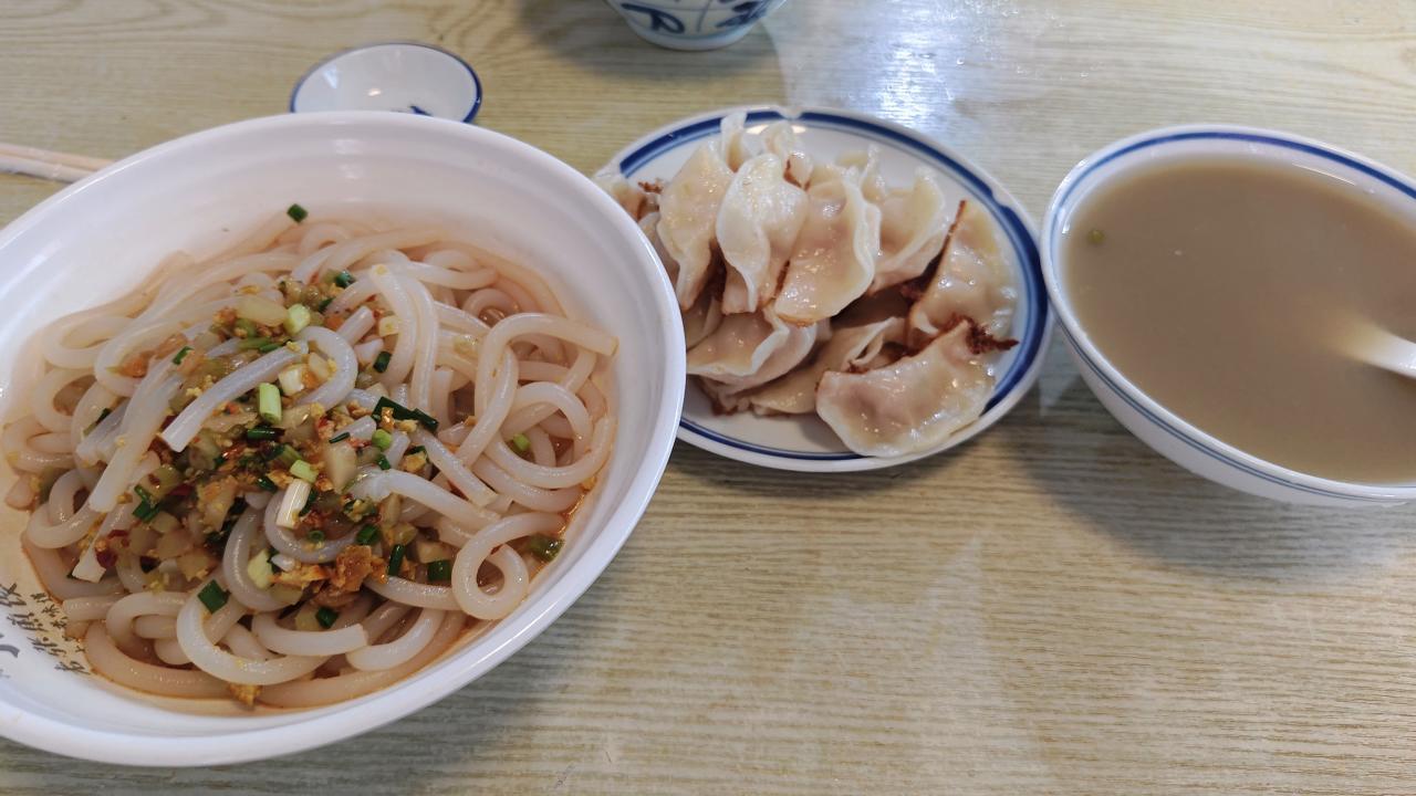 众所周知冷粉是烫的,好在绿豆汤是冰的(比前一天的绿豆冰沙更冰)。这家店煎饺只要五毛钱一个,味道也是没的说,我还能再炫二十个。