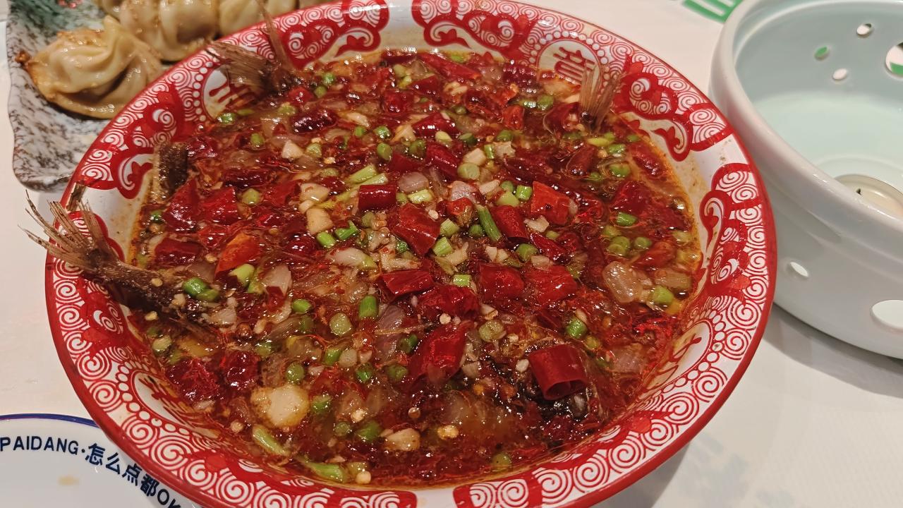 实际上在点菜的时候,它是我点的四个菜里面最不看好的一个,但现实狠狠打我脸。小黄鱼是油炸过的,辣椒无法掩盖的焦香,又吸满了汤汁,我连续暴风吸入三四五六七八条。我宣布新的MVP诞生,那就是蘸小黄鱼汤汁的生煎包!