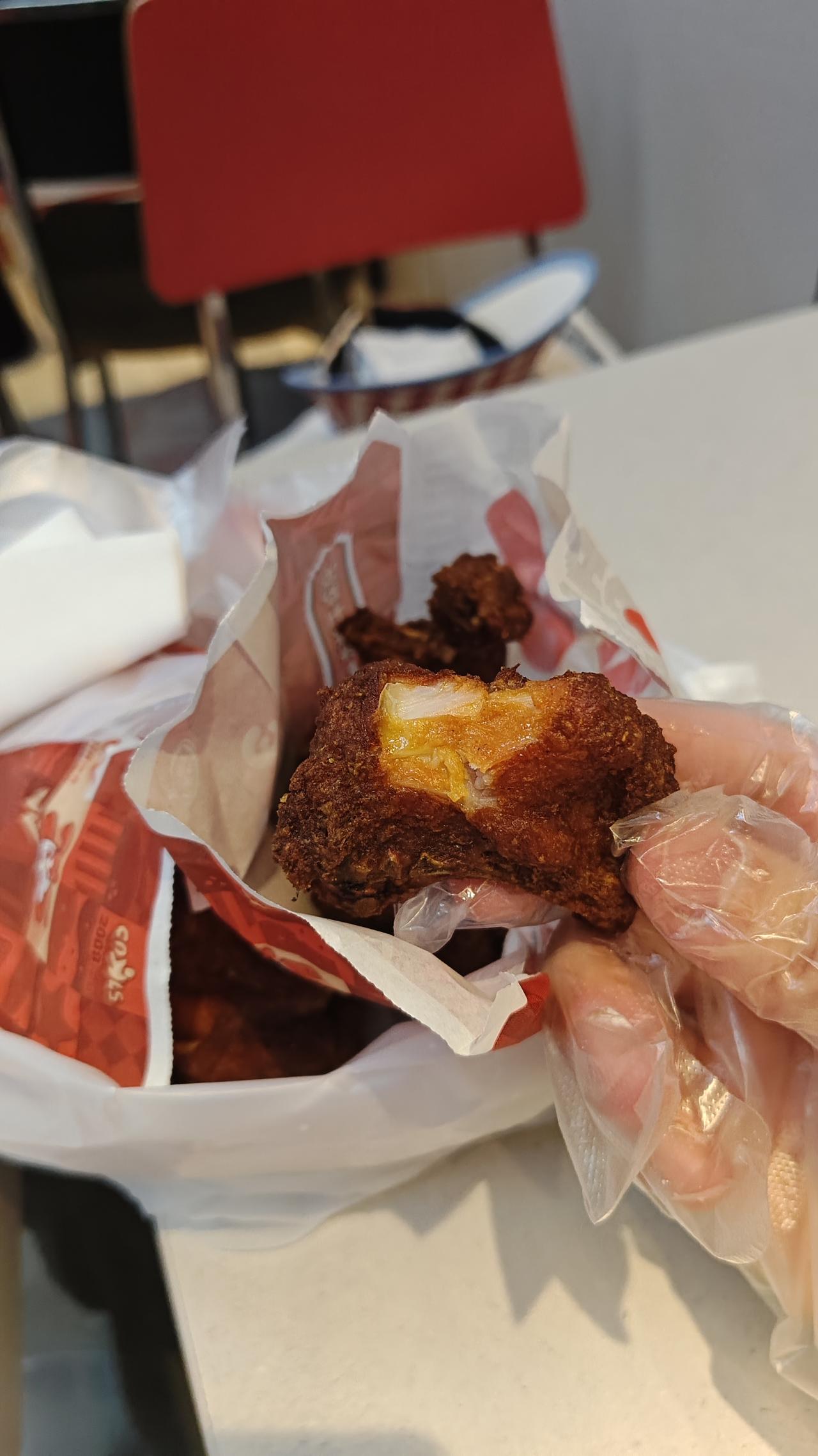 这鸡翅尖实在是辣得有点冒昧了,吃一个要缓十分钟,吃两个差不多就把柠檬水喝完了。