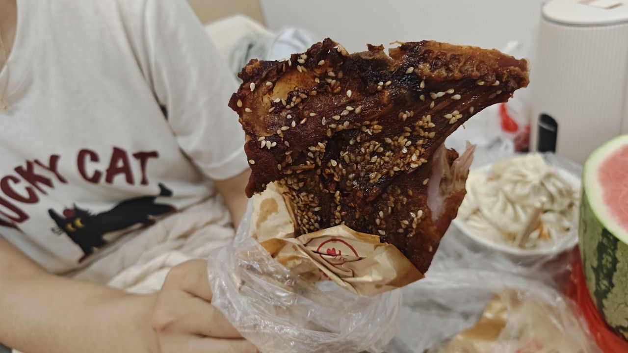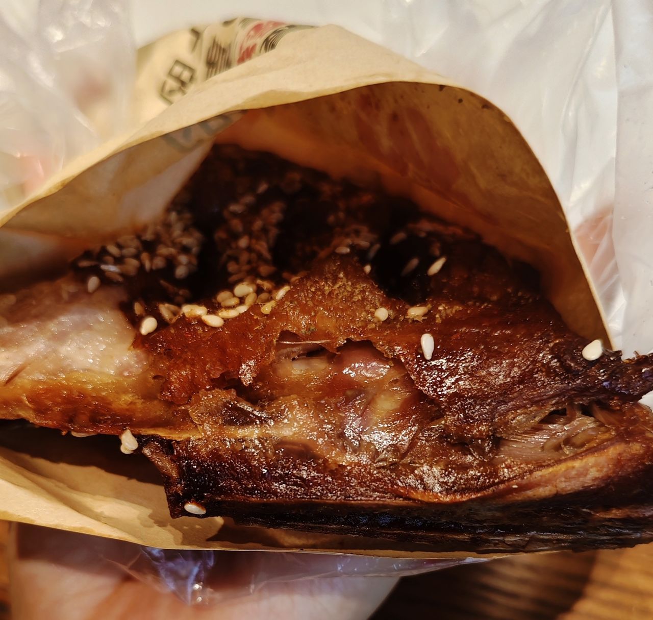 雨中屹立不倒,飘香十里,已经被小袁啃一口的,烤鸭腿!!!