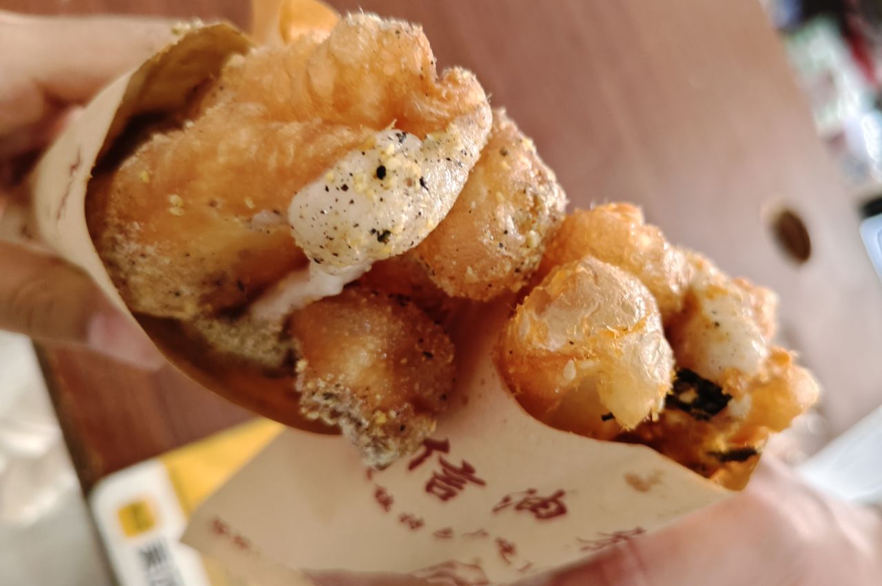 洪都大拇指竟然还卖烤肠,作为奶茶店还有这种副业,说什么也要尝尝,小袁说香得想把辣椒皮藏在牙齿缝里带回家偷偷给自己加餐。