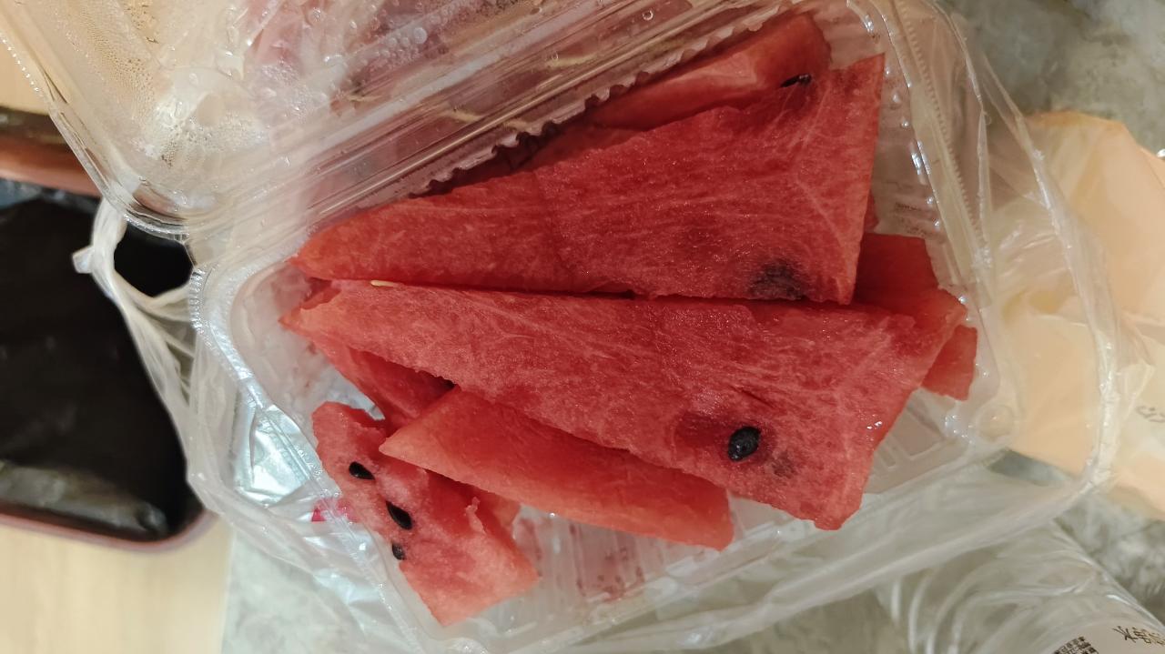 回去的路上又预见西瓜摊,今天都计划好了不吃西瓜了,可是他给切盒诶,盛情难却啊盛情难却,又买了两盒。