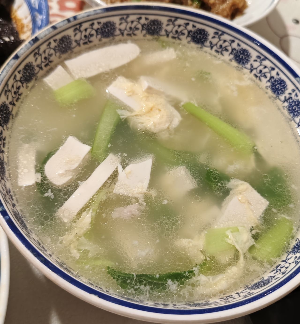 三鲜汤,大夏天配大热汤。一上来我说三鲜原来是青菜豆腐鸡蛋,结果底下藏了不少肉,而且名副其实,真的很鲜。