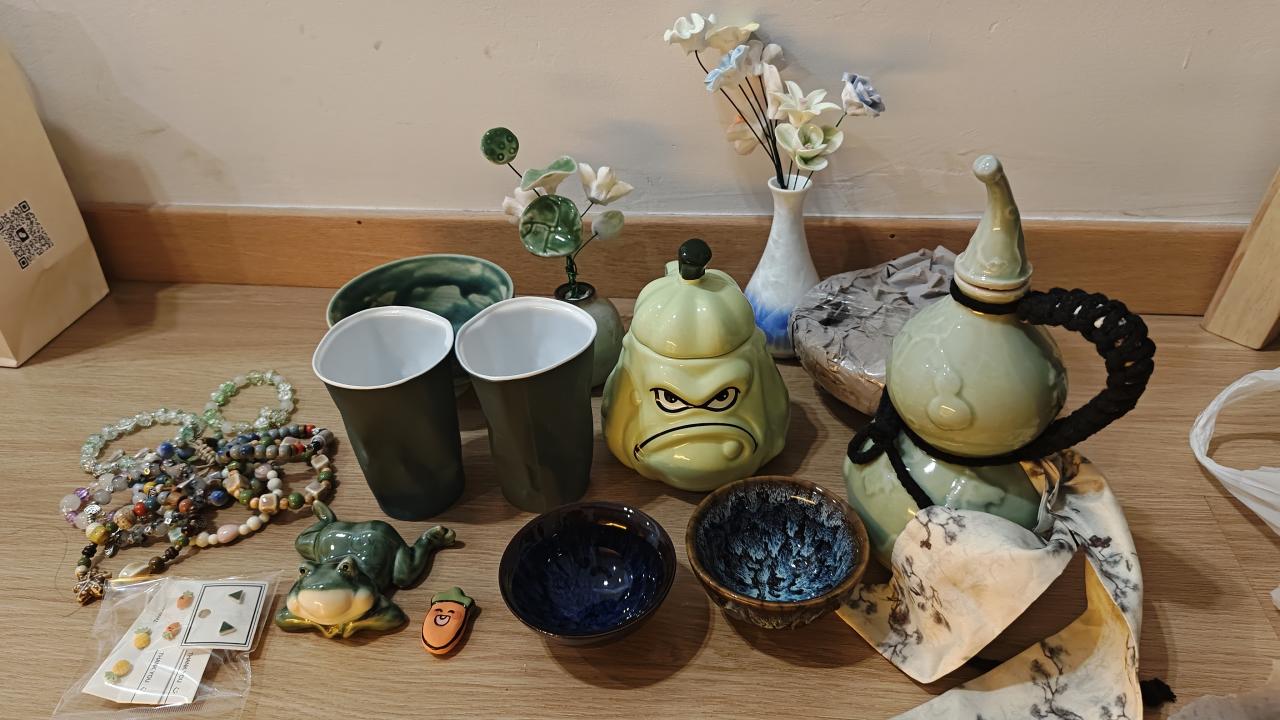 回到民宿先把西瓜和葡萄放进冰箱,最后再去陶阳新村逛一次。收获了几个漂亮小碗,一个大葫芦,两盆瓷花和手串耳钉若干。