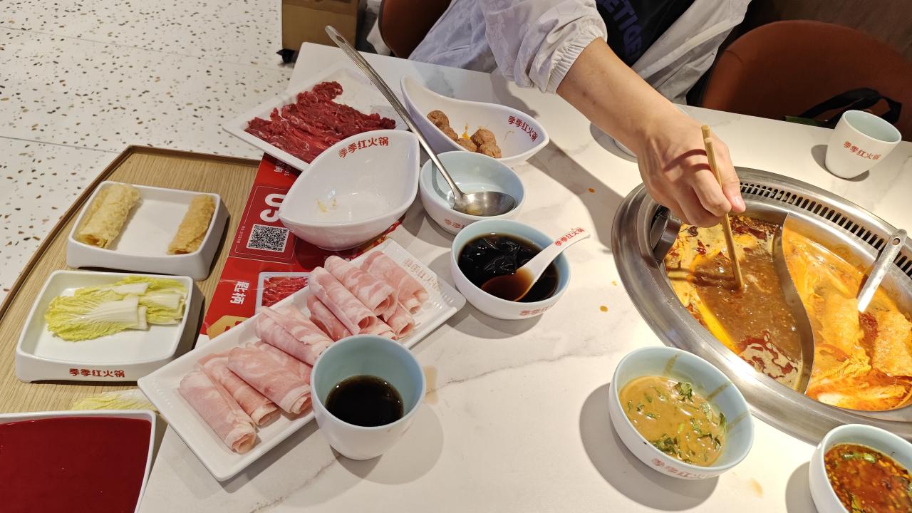 吃完了觉得这么便宜不多吃点实在是对不起这价格,所以又加了一份鸭血和豆冲。但是走出商场的时候才发现......