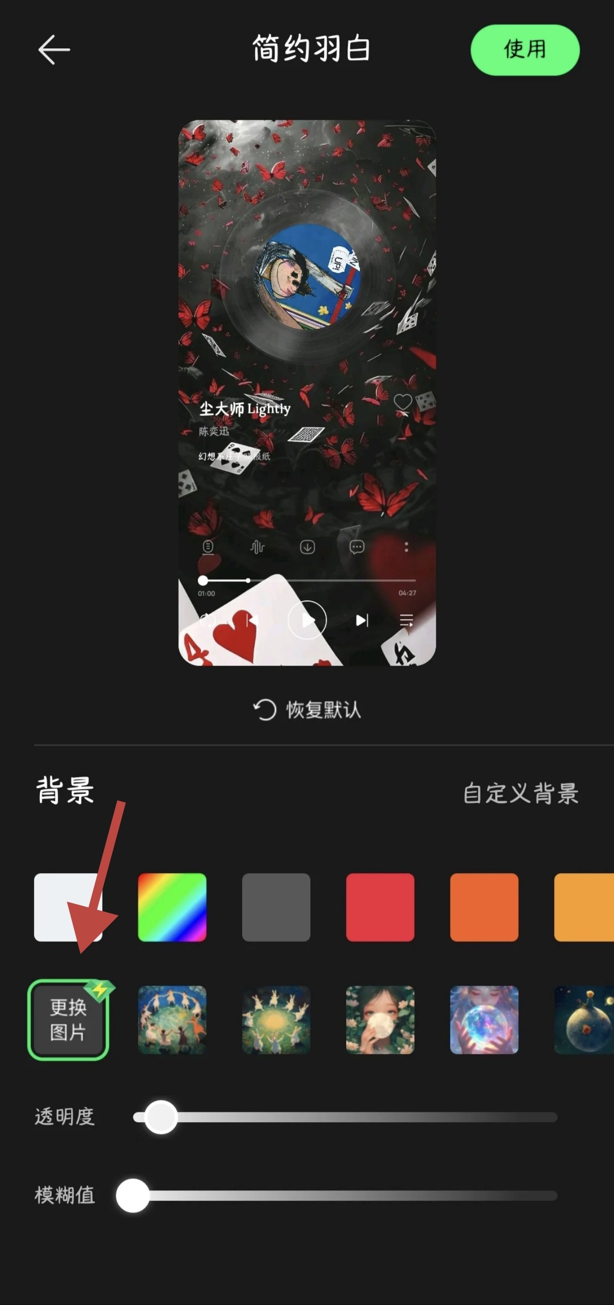第3步,點擊更換圖片。 QQ音樂需要開通綠鑽才能更換播放器背景圖。