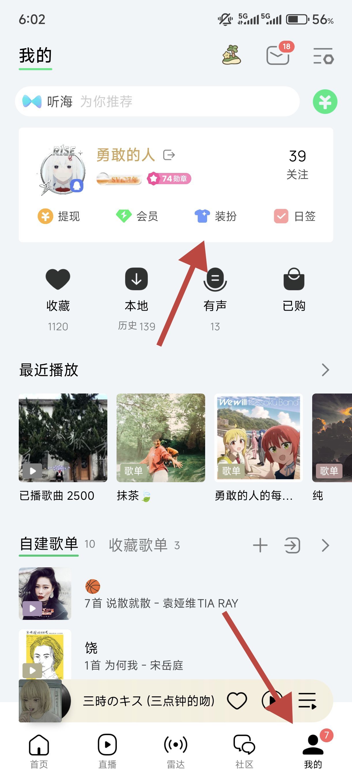 第1步打開qq音樂,點擊。右下角的我的→點擊裝扮。