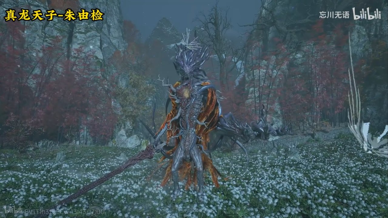 张献忠下半身因赤汞与座下黄虎融为一体,虎行似妖,时而伴随电闪雷鸣,身周断肢环生,诡异至极。