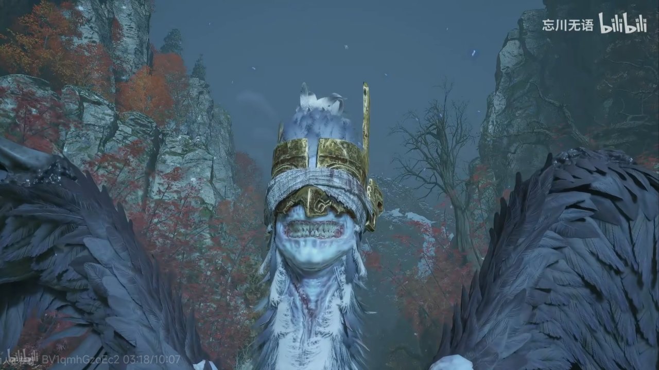 嘴中吐出鸟人头骨,暗示其早已成为羽化寄生之物