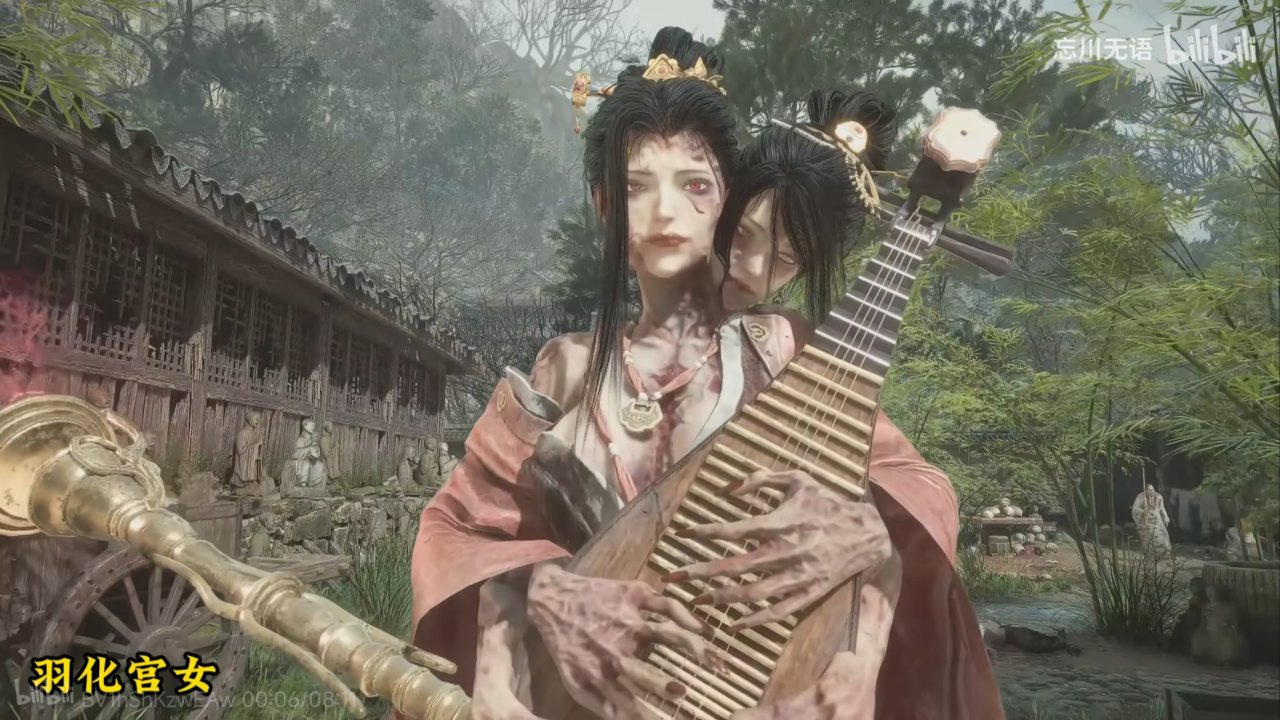 受羽化影响,两个宫女合二为一,双头单身,手中琵琶如泣如诉,溃烂手指永无止境地弹奏似乎在怨恨这恐怖的乱世