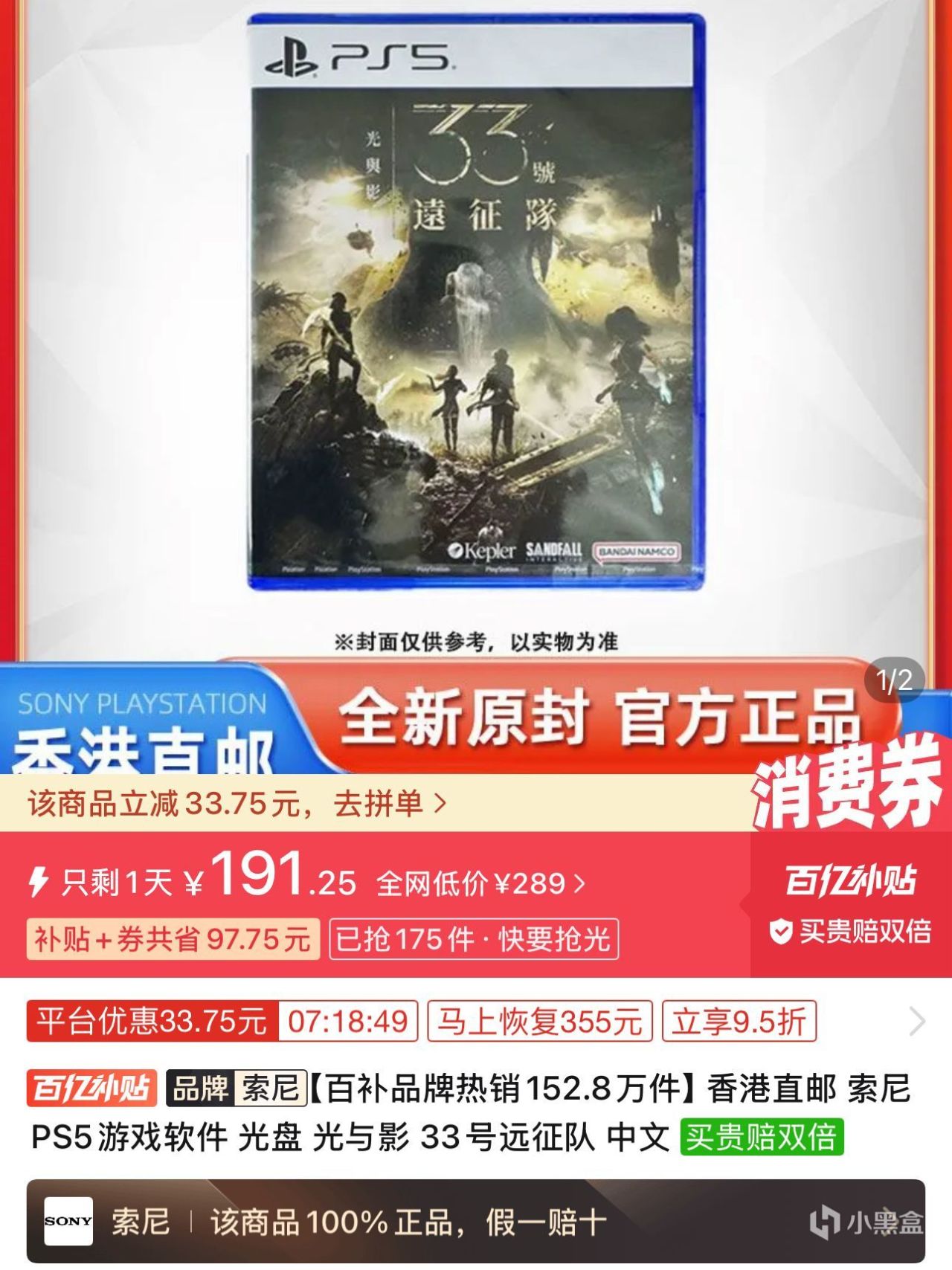 3.PS5遊戲《光與影33號遠征隊》歐版中文191.25元全新包郵,還送實體擦布,對PS5實體版遊戲封面沒有要求的朋友可以直接買,推薦給喜歡奇幻冒險RPG遊戲的玩家,看現在的行情價,個人覺得9月應該可以到170左右。