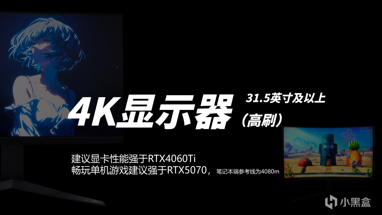 因为只要在我们舒适的使用距离内看不到像素点就能带来不错的体验了,2K已经有了不错的观感,4K对于游戏画质上的提升其实不明显,但是都明显好于1080P分辨率。大家在网上可以找到很多显卡性能对应什么分辨率的建议,但这些规则是用来规范小白行为的,避免在不明确的时候做出错误的选择,反之如果你明确自己的需求,就可以踏出那套规则按照自己的特殊需求来选