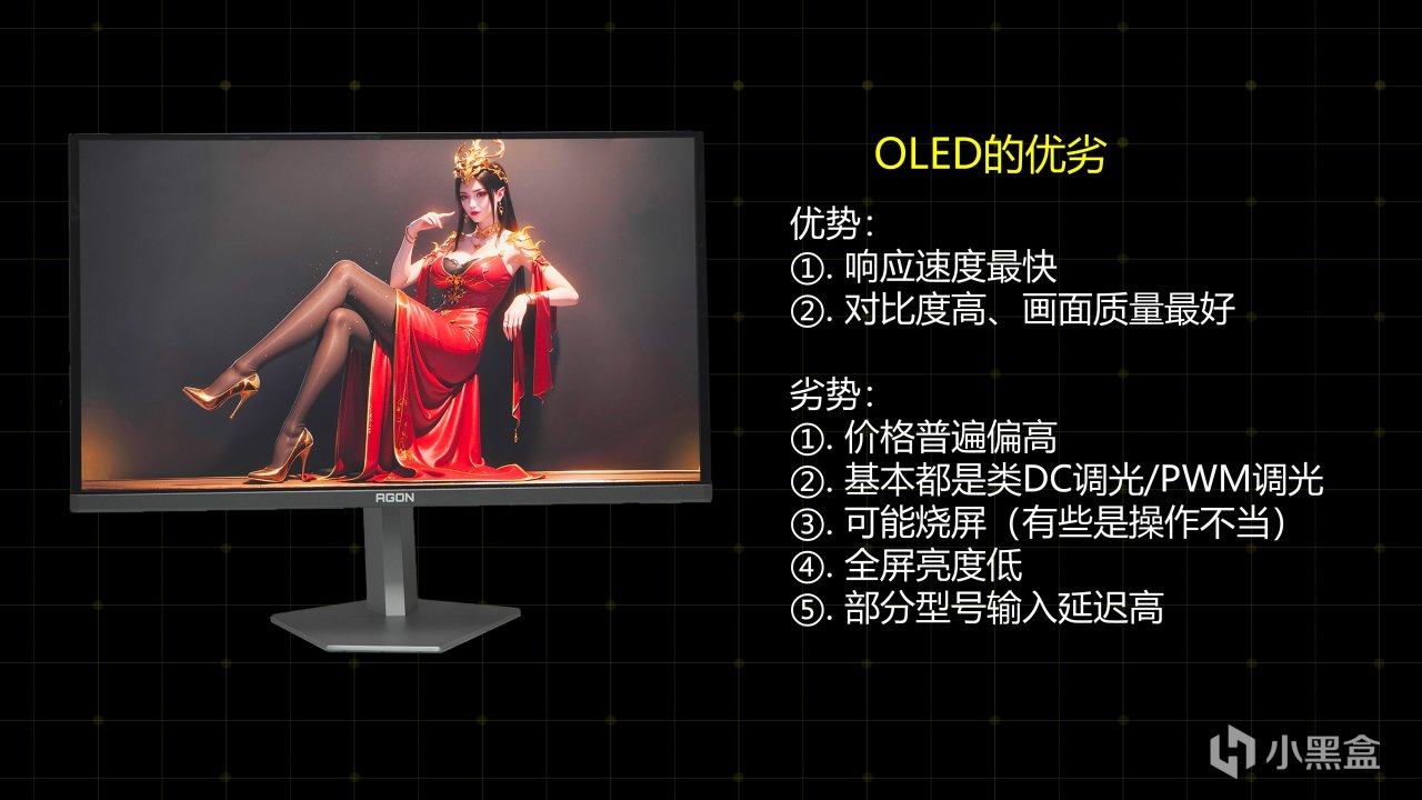 又比如说最贵的OLED显示器观感最好,但基本上都是类DC调光或者PWM调光,可能会有观众觉得看着眼睛不舒服,而且OLED显示器用久了可能烧屏,HDR场景高光表现不及miniLED