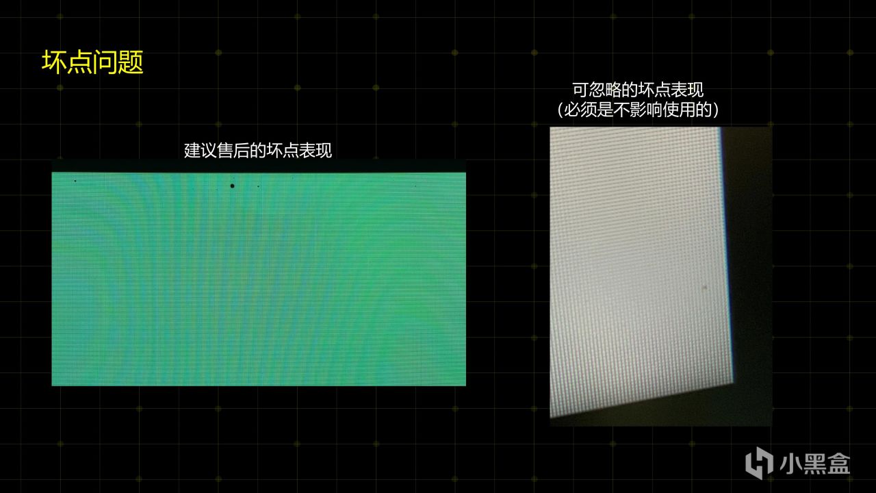一般三个以内的小坏点都不需要太关心,最好是没有坏点。漏光问题的话可以观察一下压迫性漏光