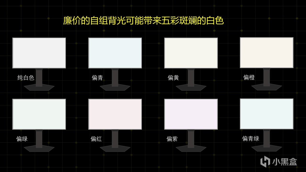 性价比类显示器绝大多数都是自组背光,自组背光就会导致一个问题,显示纯白色可能会偏色
