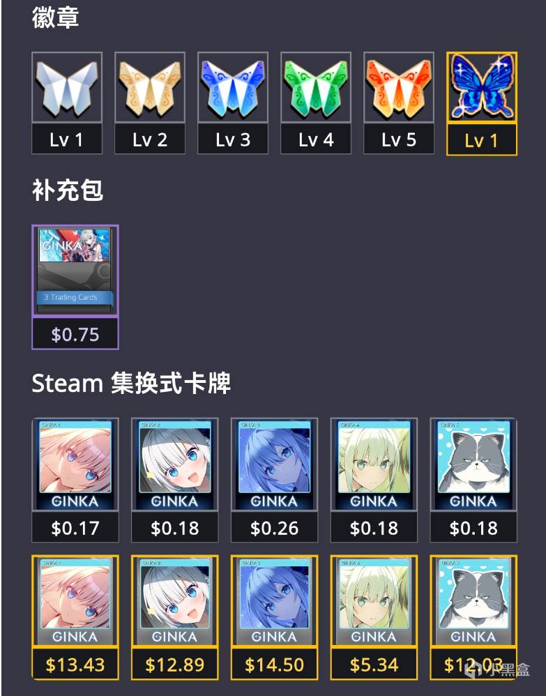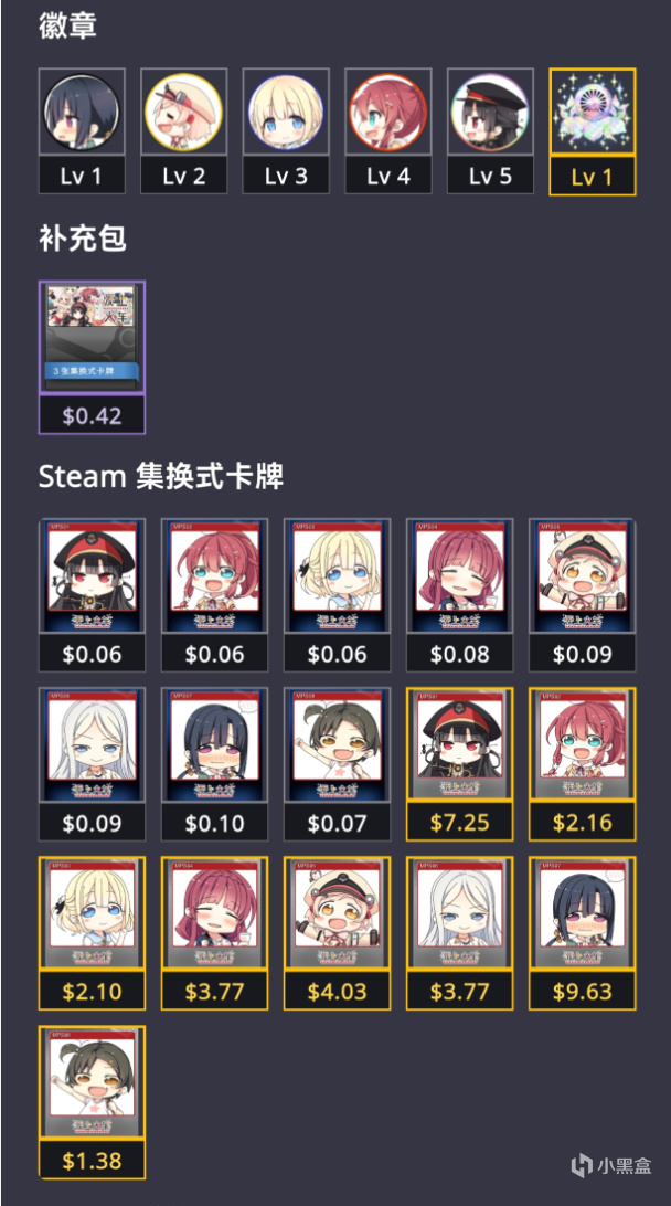 本文已將徽章等級樣式,遊戲名,卡牌價格全部歸納整理,感興趣的直接複製遊戲名在steam社區上搜索即可