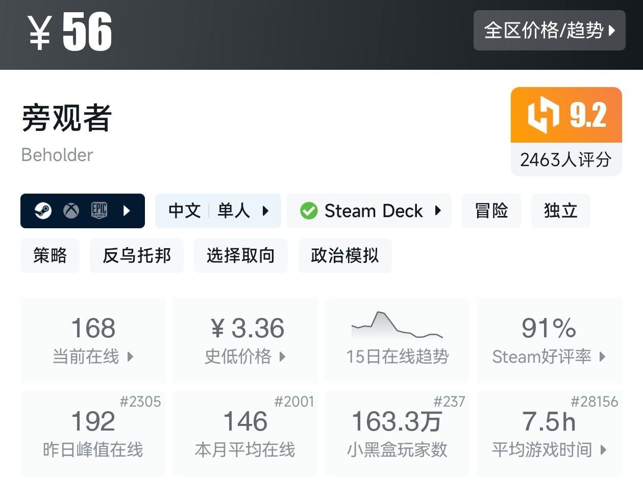 大家好,沒錯,又是我,你們的老朋友亦然,轉眼黑盒暑假大促有很多遊戲折扣就到了最後一天,有很多Steam未打折的遊戲現在或許是入坑的一個機會,黑盒商城購買遊戲的好處就是渠道正規,就是遊戲激活要去Steam激活,我將爲各位進行一個彙總,希望我的彙總,能夠幫助各位盒友挑選心儀的遊戲。