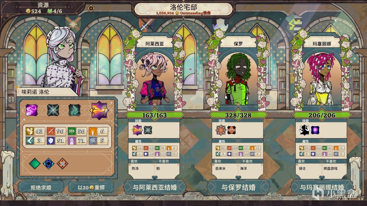 如果说《暗黑地牢》里必须要做的事是招募新队员,那么对于《骰子骑士录》来说,这件必须的事就是成婚生子。任何单身的成员都可以招亲——TA有多强,就能吸引到多强的对象;而任何已经成婚的成员,则可以无痛生子(DNA融合)——TA们的技能和属性,会在一定程度上被子嗣继承。
