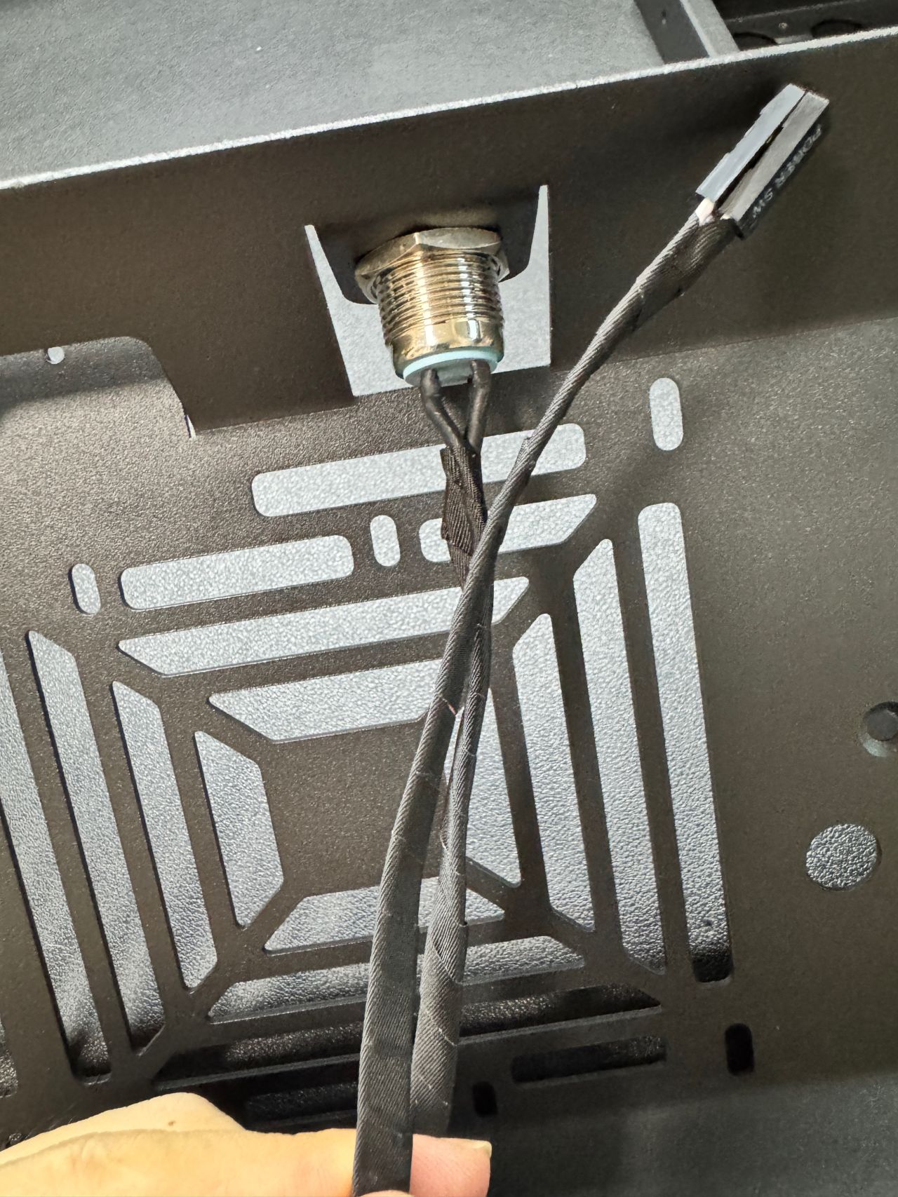 映入眼簾的就是與黑色噴漆成鮮明對比的白色開機按鈕4針線。