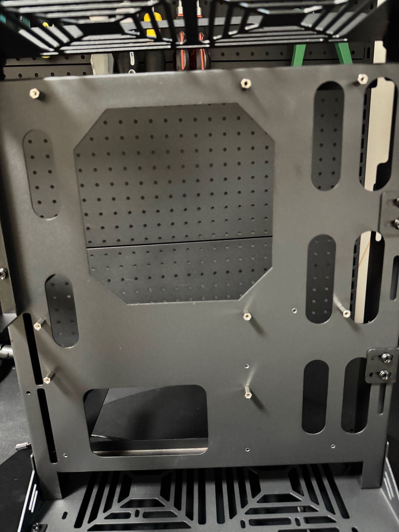 底部本來想加兩個12cm風扇的,我是兩風扇顯卡,意義不大,反而要增加噪音。