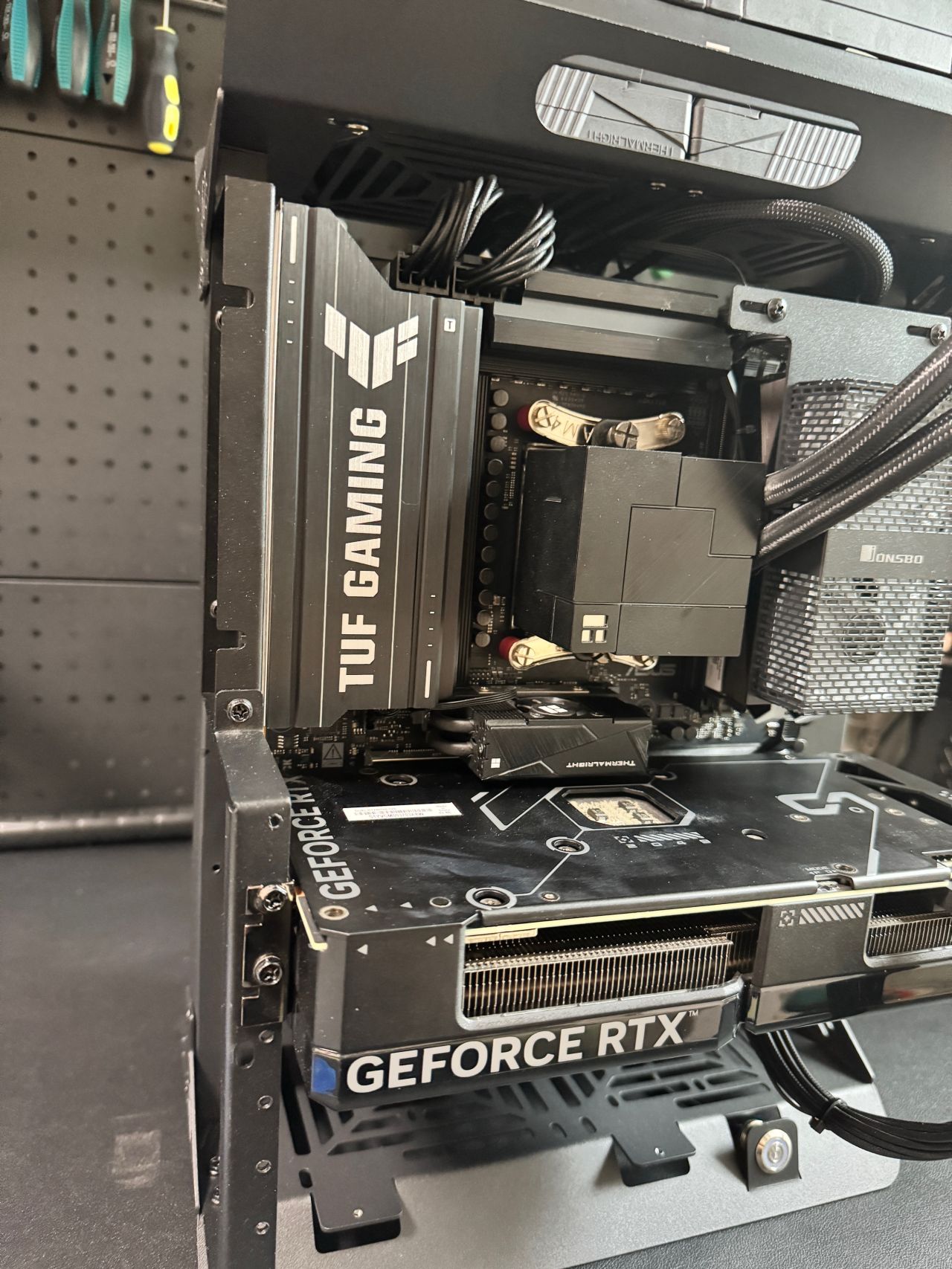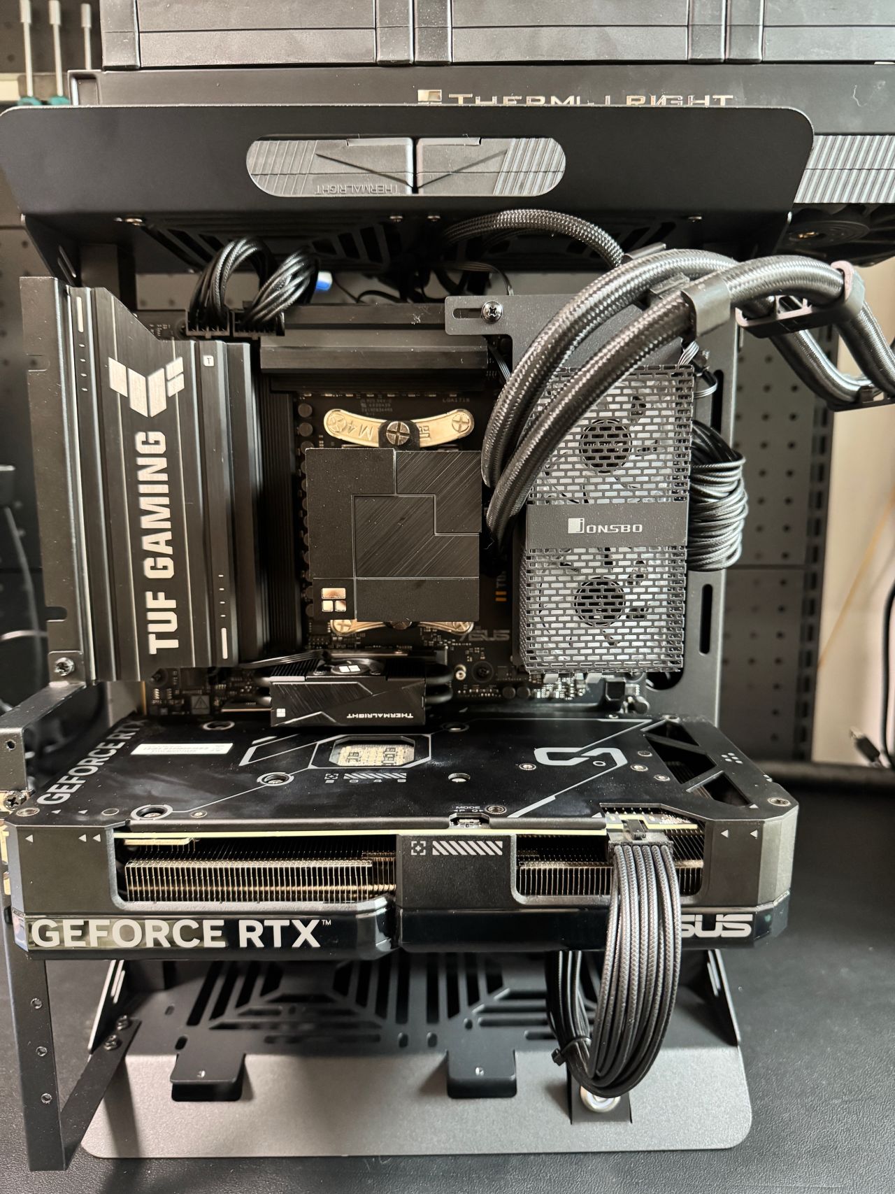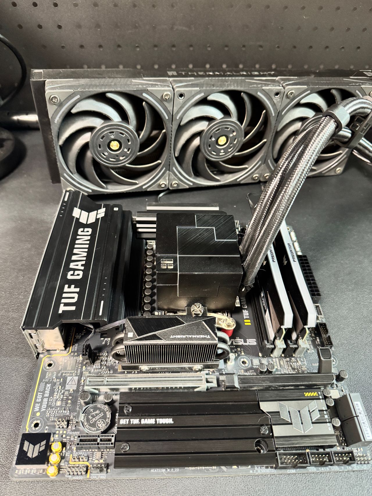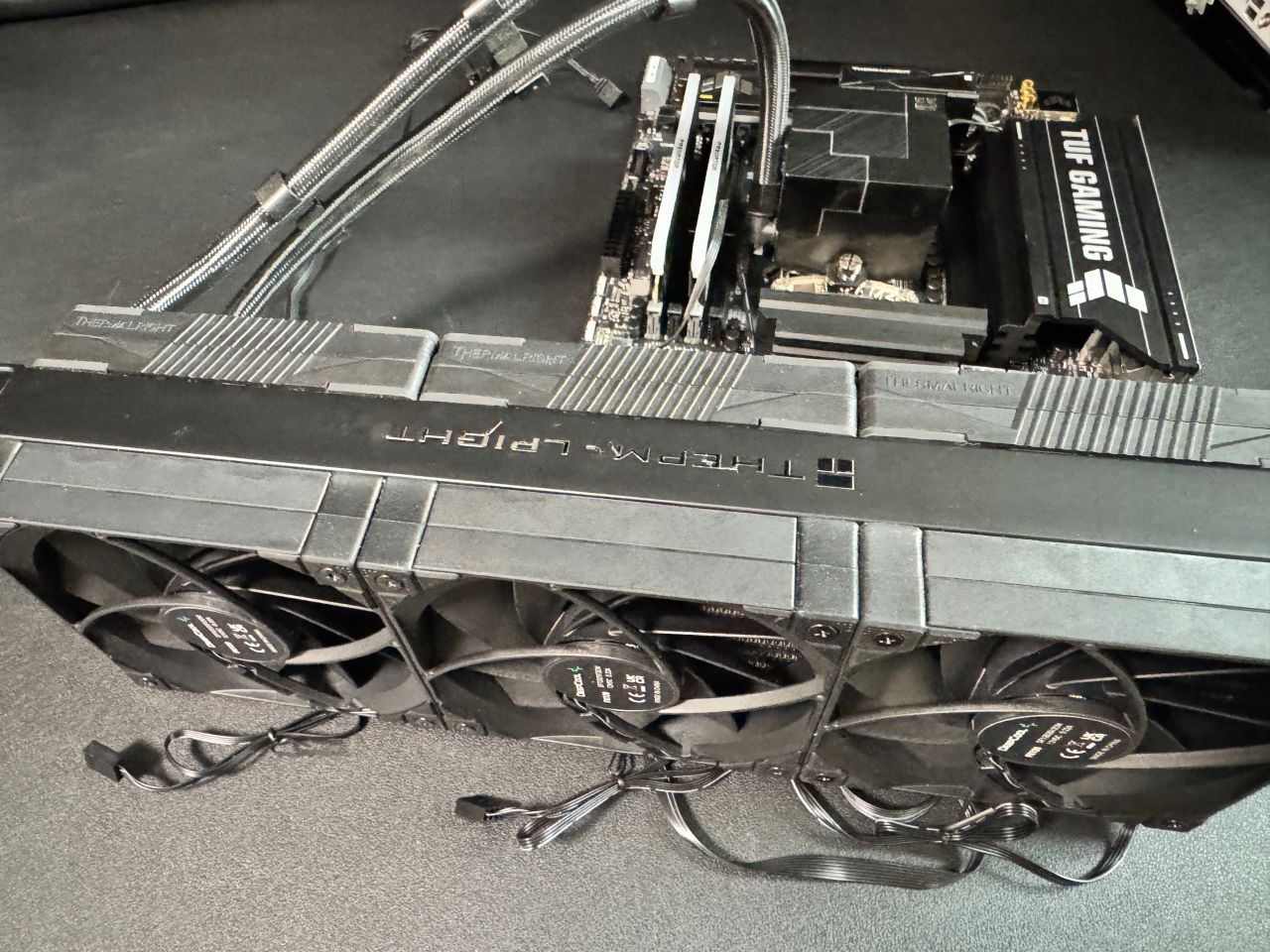 我這水冷前幾年的,不能下置位水冷管,右側水冷管的話就得打彎,整體醜確實醜了一點,但是絲毫不影響夾漢堡的性能。