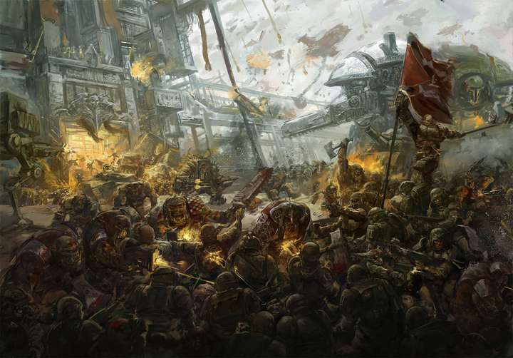 但五十多年中帝国也没歇着,帝国早已强化了阿米吉多顿的防御体系:周边星系布满要塞,轨道防御平台的数量仅次于神圣泰拉。但面对撒拉卡掀起的WAAAGH,这些防御毫无意义。随着绿皮破破烂烂的舰队撕开现实空间,绿皮所至,星球尽成焦土,拦截的帝国舰队也全军覆没。恐慌的求援信号霎时间便响彻整个星域,无数人乞求着援军能在绿皮抵达前赶到。