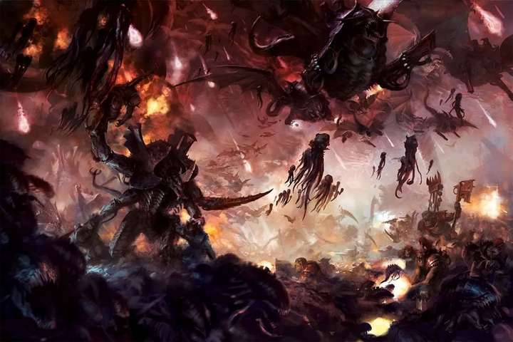 起初,"暴君"的兽人部队以为那些燃烧着穿过大气层的陨石是某种新型敌人。这些陨石砸穿了布满泰伦飞行战兽的天空,在满地爬行的虫群中犁出深沟。然而从陨石中涌出的并非覆满粘液、披着甲壳的泰伦生物,而是更多兽人。他们如潮水般涌出,向泰伦虫族发起进攻,同时陨石本身也开始用大口径火炮轰击。躲藏在破烂防御工事后的绿皮们爆发出阵阵欢呼,用弹雨支援新来的战友。接着,地面开始震颤—虫巢意志注意到了这些新的入侵者。