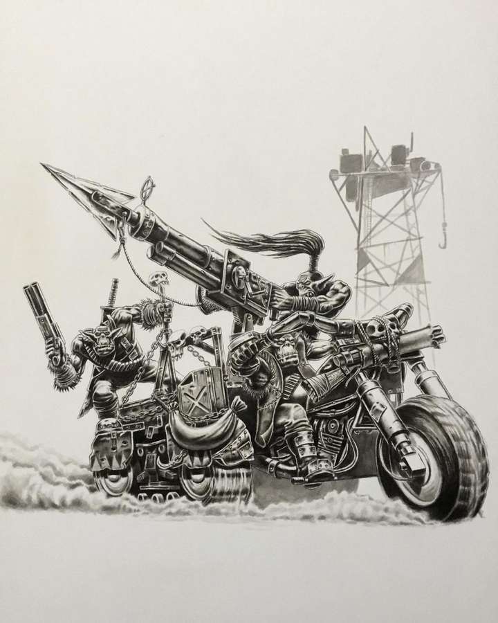 兽人极速怪咖们的历史几乎与绿皮的种族一样悠久。这些痴迷速度的战士机动性极强,每个成员都驾驶着战斗摩托、战斗越野车或卡车。虽然每个氏族都有极速怪咖的存在,但这种倾向一般在邪日氏族中最为普遍。