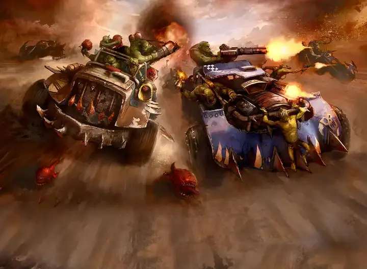 速度狂徒们以长纵队疾驰,能利用战线间最微小的缝隙突进。当需要拓宽通道时,战斗摩托手们便用武器开道,倾泻的弹雨会开辟出一条宽阔的死亡地带。这些痴迷于速度的绿皮们虽为机动性牺牲了装甲,却以典型的兽人作风在轻型载具上堆砌了远超想象的火力。
